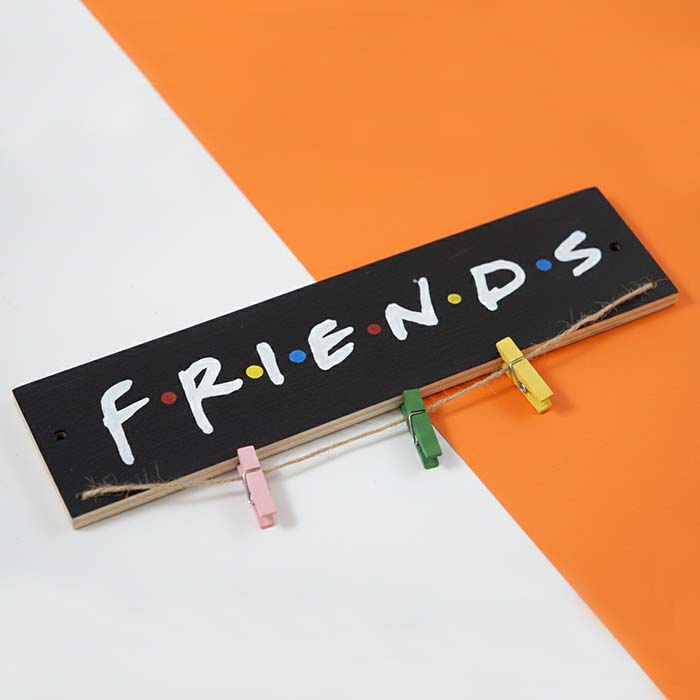 Producto hecho 100 % a mano con madera. Si eres de esas personas que prefieren darle un toque único a su hogar, este es el detalle perfecto. Con temática de la serie Friends, este colgador contiene espacio para 3 fotos estilo Polaroid.