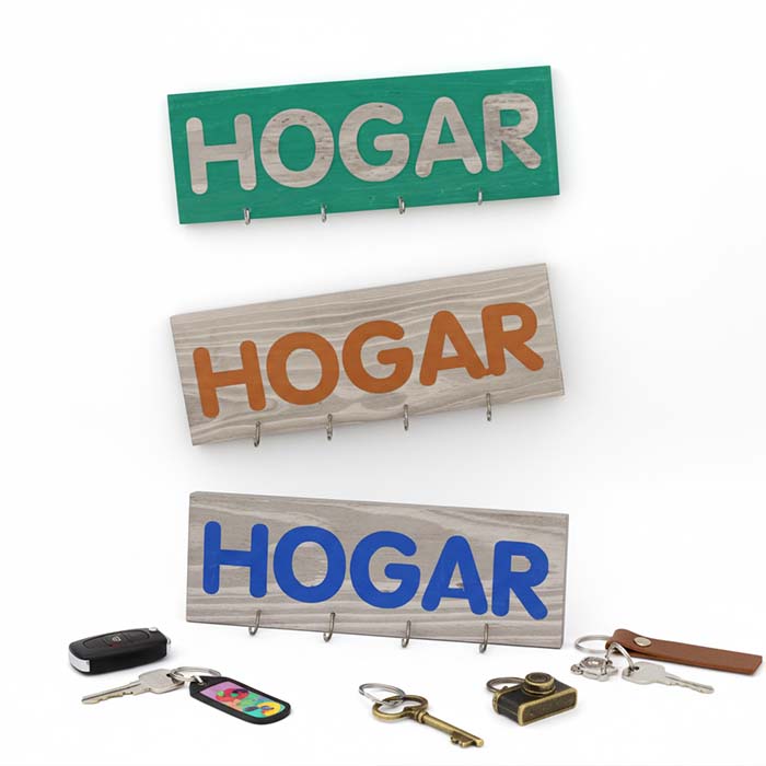 Un colgador de llaves para la casa. Con un espacio para 4 llaves este producto es elaborado 100 % a mano con madera.